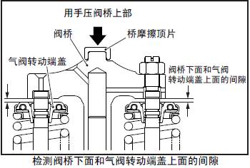 檢測閥橋下面和氣門轉(zhuǎn)動端蓋上面的間隙,掌握現(xiàn)在的狀況。