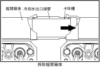 (2) 將冷卻水出口接管朝卡環(huán)槽側(cè)移動,使其和對接的三菱S12柴油發(fā)動機(jī)搖臂箱體分離。