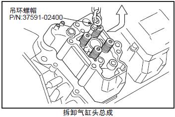 注: 三菱S12柴油發(fā)動機(jī)氣缸頭由定位銷固定,要垂直于安裝面拆卸。