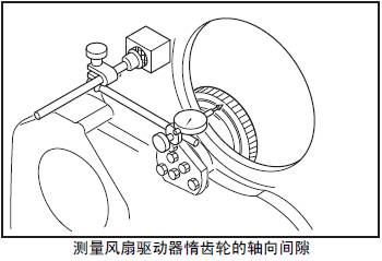 測量三菱S12柴油發動機風扇驅動器惰齒輪的軸向間隙。超過極限值時,確定故障部件后更換。