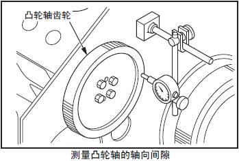 測量三菱S12柴油發動機凸輪軸的軸向間隙。超過極限值時,確定故障部件后更換。