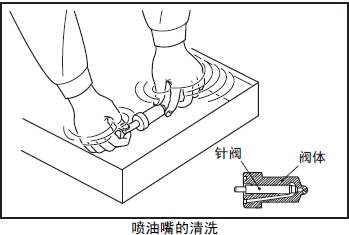 (5) 調整和清洗后噴霧狀態不能好轉的話,要更換新的噴油嘴。新的噴油嘴涂有防銹劑,最初一定要用清洗油清洗,然后用柴油再次清洗后才能組裝。