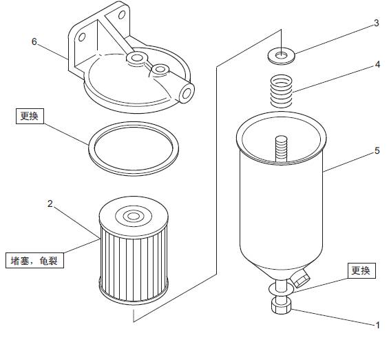 (2) 濾清器報(bào)警器的亮燈開始壓力超出標(biāo)準(zhǔn)值時(shí),更換新品。
