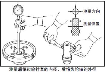 2.1 測量三菱R16柴油發動機后三菱R16柴油發動機惰齒輪襯套內徑和三菱R16柴油發動機后三菱R16柴油發動機惰齒輪軸外徑