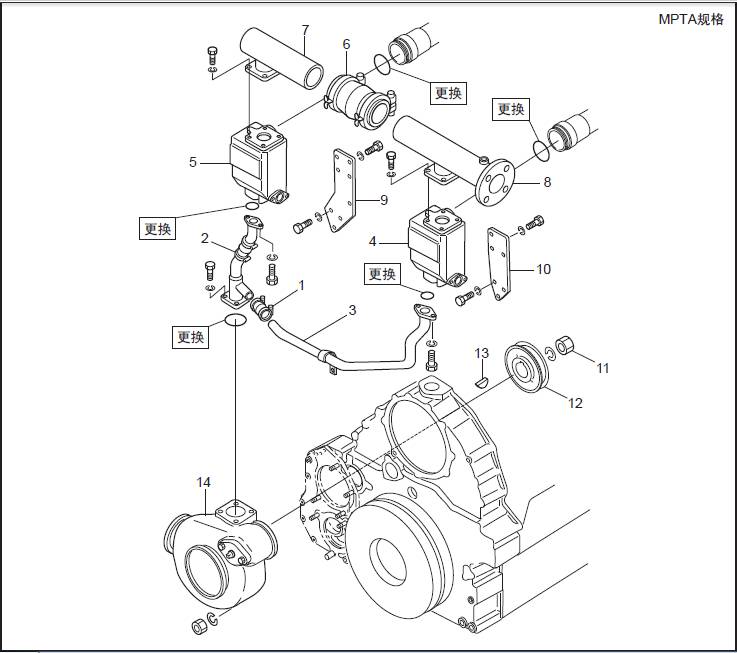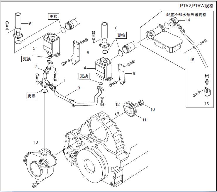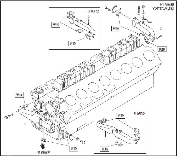 三菱S16柴油機冷卻水管的拆卸,檢修拆卸順序