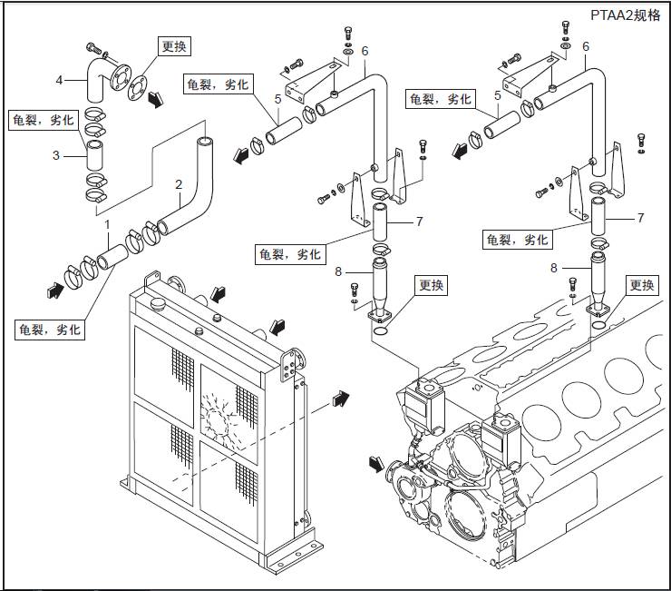 三菱S16柴油機空氣冷卻器水管的拆卸,檢修