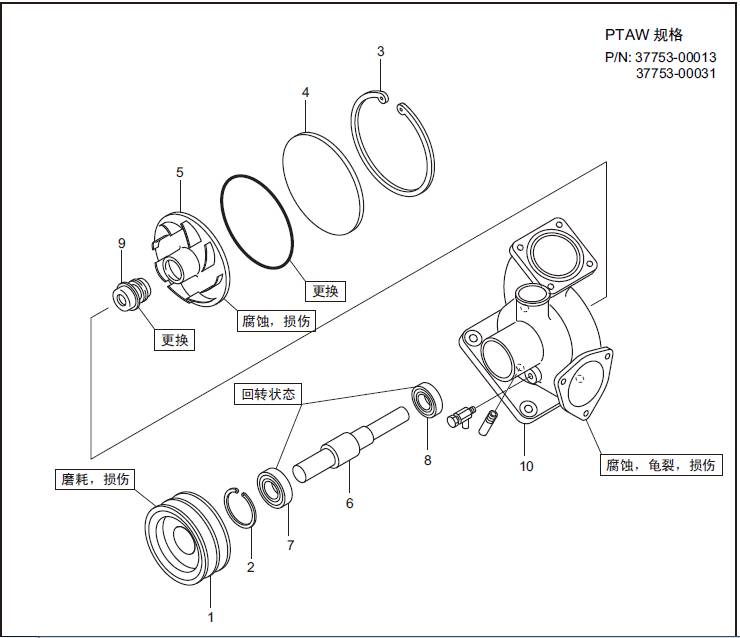 三菱S16柴油機空氣冷卻器水泵、海水泵的檢修(PTAW 規格)