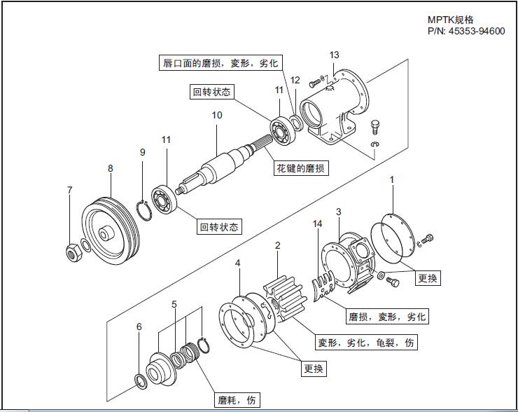 2.7 三菱S16柴油機空氣冷卻器水泵的解體、檢修