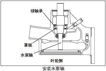(2) 球軸承的罩板側朝向葉輪側,壓入三菱S16柴油機水泵軸。