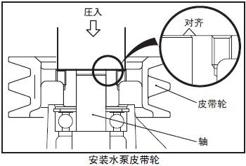 將三菱S16柴油機水泵皮帶輪壓入三菱S16柴油機水泵軸。