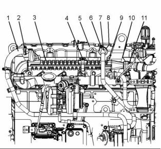 12. Install the unit injector actuation oil manifold.