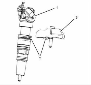 4. Remove electronic unit injector (1) and clamp