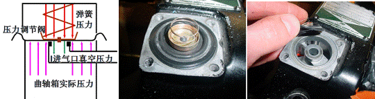 通過與進氣管的真空度和彈簧彈力 的平衡來保持曲軸箱壓力在一個恒定的水平