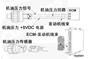 電子控制模塊 (ECM) 利用機油壓力傳感器監測機油壓力。ECM 監測信號觸針上的電壓并將它轉換成壓力值。ECM 將機油壓力值用于發動機保護系統。