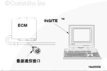 條件 連接所有部件。 采取措施 使用 INSITE™(零件號 3825145)清除所有非現行故障代碼。 注:數據通信接口接頭位于飛輪殼右排上。 |