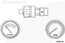 條件 停機/運轉開關處在“STOP”(停機)位置。 控制器不在診斷模式。 采取措施 將已知質量和標定的機械式機油壓力表連接到發動機的機油濾清器座的頂部上其中一個螺塞上。 將 INSITE™(零件號 3825145)連接到數據通信接口上。 起動發動機,將屏幕上的機油壓力讀數與機械式機油壓力表上的讀數進行比較。 注:需要提高發動機轉速,以便更容易地發現讀數間的差異。 |