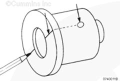 凸輪軸惰輪軸和液壓泵惰輪軸中的油孔必須按照特定方位安裝。如果軸的方位不正確,則會導致齒輪襯套故障。