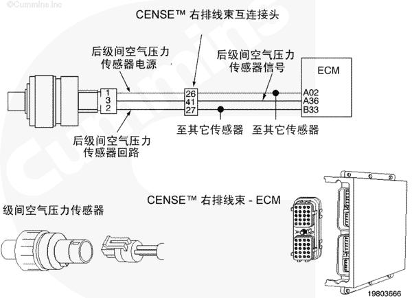 后級間空氣壓力傳感器向 CENSE™ 電子控制模塊 (ECM) 提供后中冷器壓力(增壓壓力)信號。
