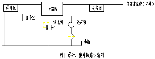 結合舉升、翻斗回路示意圖,分析舉升、翻斗無力的原因如下: