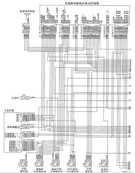 1)變速箱和操縱桿控制器C1(雌)(5)和機(jī)箱接地之間的電阻:5-15Ω 2)變速箱和操縱桿控制器C1(5)和機(jī)箱接地在空擋時(shí)的電壓:小于1伏 |