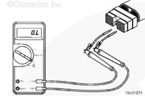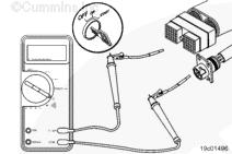 測量康明斯qsb5.9發動機 SAE J1939 數據通信接口(屏蔽)觸針(如果可用)與接頭上的所有其他觸針之間的電阻,每次測量一個觸針。萬用表必須顯示開路(100K 歐姆或更大)。