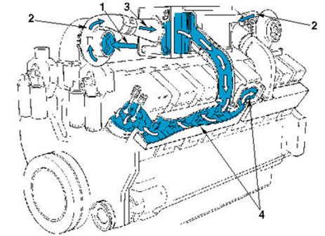 船用發動機上的渦輪增壓器為水冷式。軸承殼體和渦輪增壓器渦輪殼體為水冷式。