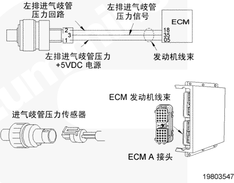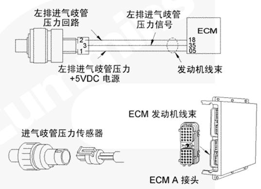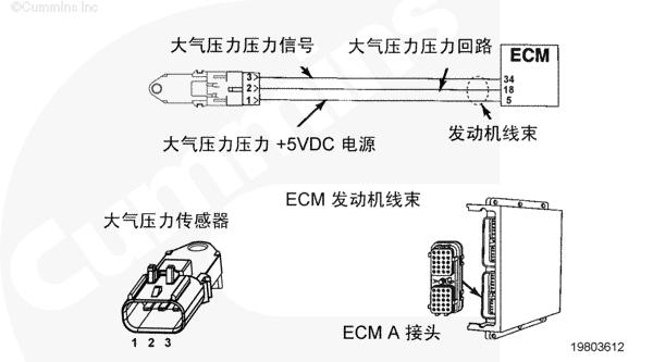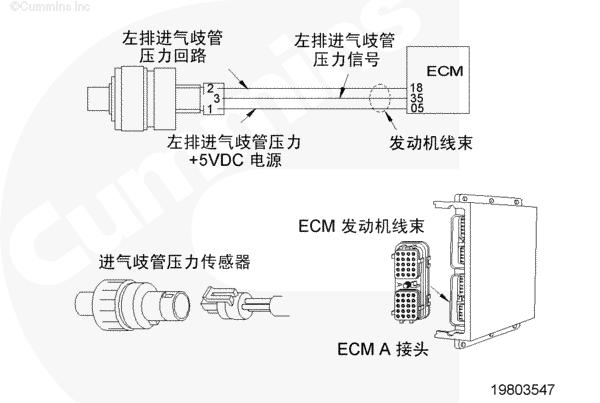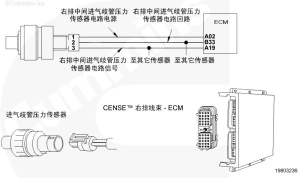 該故障可能的故障模式有觸針之間對(duì)信號(hào)或電源線(xiàn)上的接地短路、傳感器損壞或者 CENSE™ ECM 中電源損壞。
