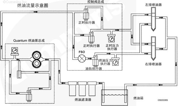 康明斯QSK78發(fā)動(dòng)機(jī)燃油系統(tǒng)流動(dòng)示意圖 |