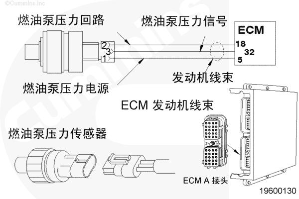 燃油泵壓力傳感器電路圖通過(guò)康明斯QSK78發(fā)動(dòng)機(jī)線(xiàn)束向 CM500 ECM 提供燃油泵壓力傳感器信號(hào)。CM500 ECM 利用燃油泵壓力傳感器信號(hào)監(jiān)測(cè)從控制閥體輸送到噴油器正時(shí)油腔的燃油泵壓力。