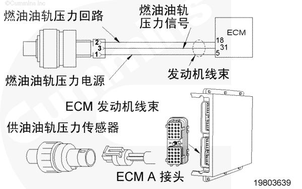 康明斯QSK78發(fā)動(dòng)機(jī)燃油油軌壓力傳感器電路圖 |