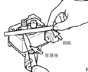 (2) 將節溫器放入水容器,然后緩慢加熱水并用溫度計檢查溫度。如果在83°C 的溫度時閥門升程是0.1mm(開始打開),在95 °C 的溫度時閥門升程是8mm或更大(全開),節溫器是正常的。