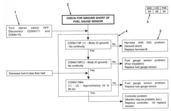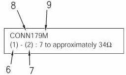 故障診斷與排除程序的術(shù)語圖 (6) 接頭內(nèi)的端子編號 (7) 短路位置 (8) 接頭編號 (9) "M" 陽 "F" 陰 |