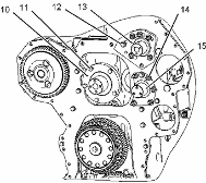 注: 如果卸下軸組件,跳過步驟 12。 需要重新調整凸輪軸齒輪和可調惰輪的齒隙。 請參閱測試與調整, "齒輪總成(前)- 正時"。