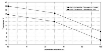 乙醚起動(dòng)輔助根據(jù)冷卻液溫度、進(jìn)氣岐管溫度和大氣壓力工況圖動(dòng)作。請(qǐng)參閱插圖 1。