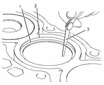 使用8H-8581塞尺(3)測量活塞環端隙。有關尺寸的信息,請參閱技術規格,"活塞和活塞環"。