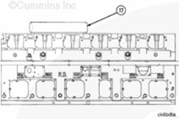 12. 冷卻液缸體通道螺塞(帶外置中冷器的 KTTA 和 KTA 康明斯發動機具有用于中冷器冷卻液進水軟管的管接頭。)。