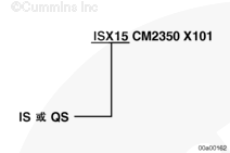 注: 并非所有電控發(fā)動機都使用“IS”或“QS”前綴。要核實發(fā)動機是否是電控發(fā)動機,檢查以確認服務型號名稱中是否列出了電子控制系統(tǒng)即可。本步驟的后面部分將會提及作為服務型號名稱的組成部分識別的控制系統(tǒng)。非電控發(fā)動機沒有“IS”或“QS”前綴,并且服務型號名稱中也不會列出電子控制系統(tǒng)。