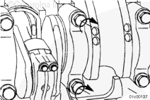 將曲軸推向發動機后部,以安裝前止推軸承;然后將曲軸推向發動機前部,安裝后止推軸承。