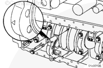 主軸承蓋上標記有“V”字樣。使“V”標記指向發動機的前面。定位不正確會導致發動機嚴重損壞。 |