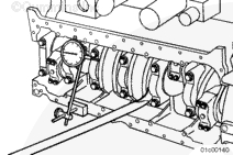 如果曲軸軸向間隙大于 0.50 mm [0.020 in],必須拆下發動機才能更換曲軸。參考第 0 節中的步驟 000-001(發動機拆卸)。