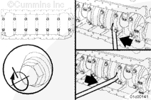 如圖所示,在每個主軸承蓋上的 2 個主軸承蓋表面涂上一層 Loctite™ 518 螺紋密封膠。