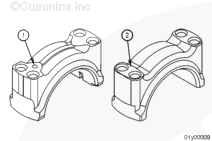 斷面分裂式連桿 (1) 可以在同一臺(tái)發(fā)動(dòng)機(jī)中與鋸切式連桿 (2) 混用。關(guān)鍵的問題是了解正在維修的連桿是哪種型式,以進(jìn)行正確的軸承軸瓦選擇。