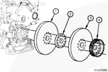在導(dǎo)向雙頭螺柱上安裝減振器 (1)、裝配隔圈 (2)、第 2 個減振器 (3) 和皮帶輪 (4)。