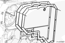 安裝一個新的帶狀密封墊。確定重疊部分朝向齒輪室的頂部和中間。