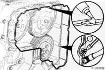 將前齒輪室蓋安裝在導(dǎo)向銷上。