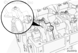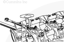 使用度盤式扭矩扳手(量程 0 到 150 in-lb)擰緊噴油器搖臂調節螺釘。如果調整過程中螺釘發出咔噠聲,則需要維修螺釘和搖臂。