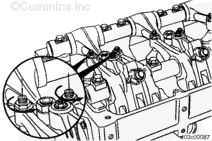 設置氣缸上的噴油器后,再設置同一氣缸上的氣門和發動機制動器。