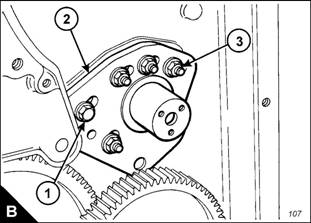 To adjust the backlash, remove the three bolts and thrust plate which retain the adjustable idler gear (A2)