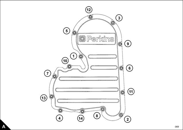 2 Fit the gear case cover and tighten the bolts, in the sequence shown (A), to a torque of 20 Nm (5 lbf ft).