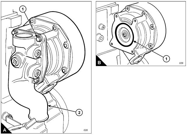 2 If necessary, fit a new ‘O’ ring seal (B). Fit the elbow (A2) and retain with four bolts (A).